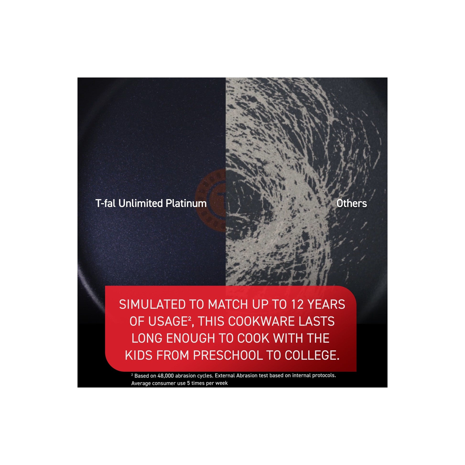 - Simulated to match up to 12 years of usage², this cookware lasts long enough to cook with the kids from preschool to college