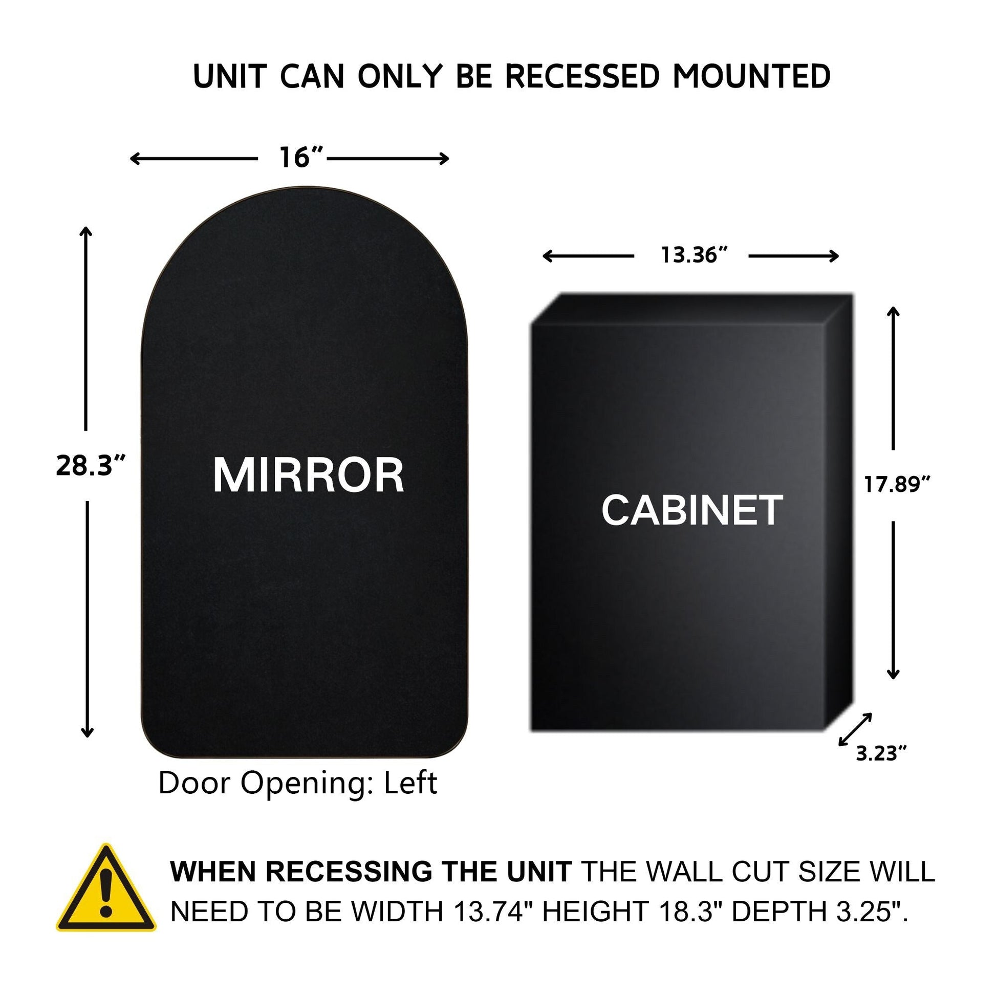 - Metal framed arched medincine cabinets: Premium metal door with matte black finish. Door is coming with self closing hinges.