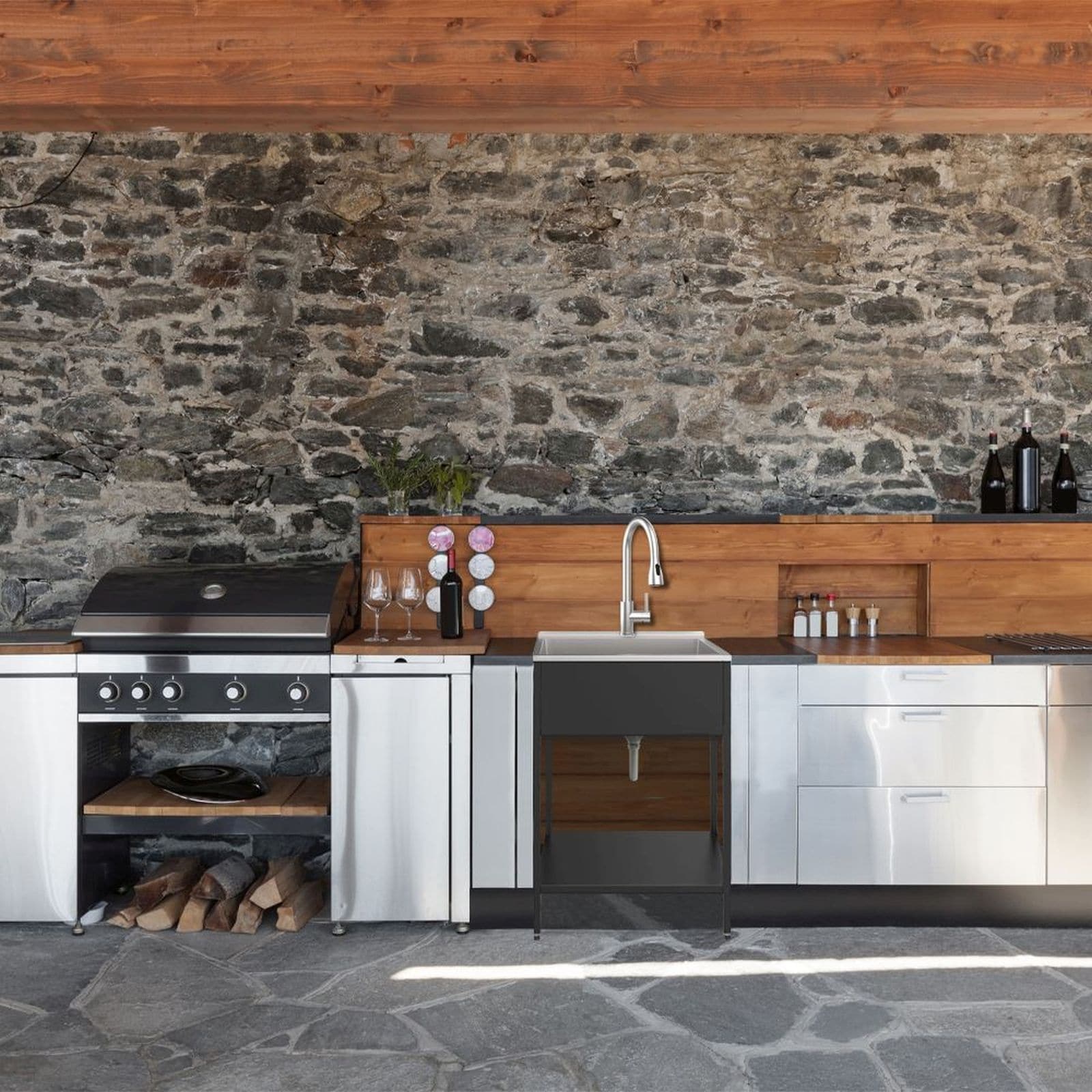 - Transolid's laundry sink with washstand is perfect for both indoor and outdoor use! This compact and affordable sink is made of 18 gauge stainless steel, ensuring durability and long-lasting use. With its compact design, our sink can fit easily into small spaces, making it ideal for apartments, condos, and small laundry rooms. The sleek and modern look adds a touch of sophistication to any space, while the washstand provides ample storage space for all your cleaning essentials. Upgrade your cleaning game with our indoor/outdoor laundry sink with washstand today!