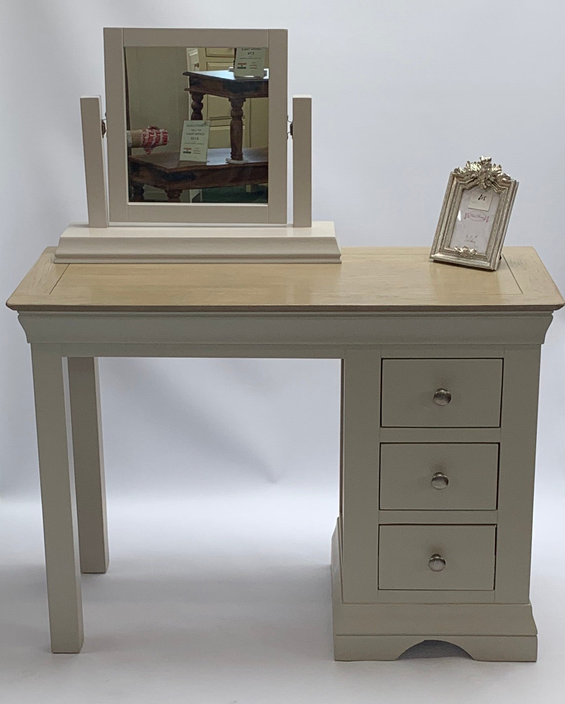 Un miroir inclinable qui peut être utilisé avec n'importe laquelle des quatre commodes de cette gamme.
