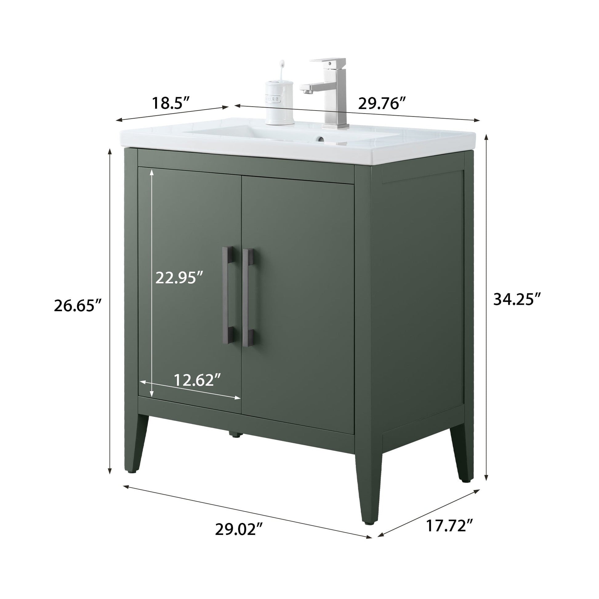 Vanity Art 20 or 24 or 30 Single Sink Bathroom Vanity Cabinet with Ceramic Top
