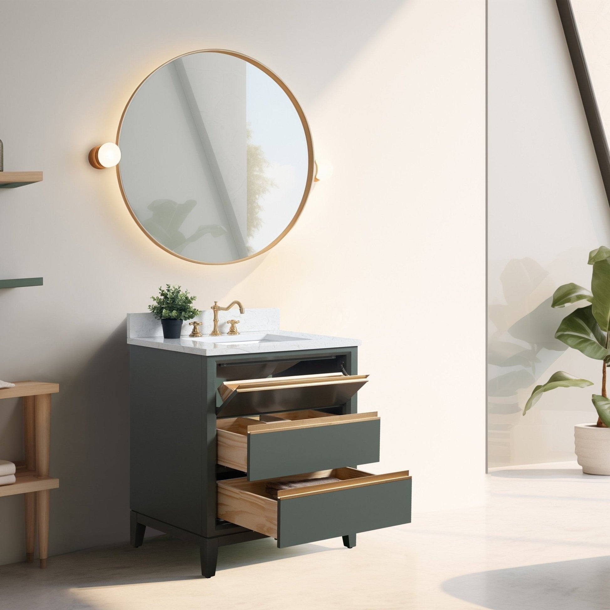Vanity Art introducing the premium poplar wood bath vanity with sink. It is the perfect blend of functionality and style for your home. This essential piece offers generous storage space, featuring a Flip Down Tray, adjustable shelves, and drawers to keep your belongings organized and easily accessible. Crafted with convenience in mind, our sink cabinet boasts a sleek ariston engineered marble countertop that not only adds a touch of elegance but is also a breeze to clean. The rectangular undermount sink complements the countertop, creating a seamless and eye-catching look for your bathroom. Built to last, our under-sink cabinet soft-closing doors and drawers are equipped with premium-quality hinges, ensuring smooth and reliable operation. Versatility is key - our vanity bathroom sink cabinets aren't limited to the bathroom. With its stylish design and functional features, it's the perfect fit for a kitchen cabinet with a sink.