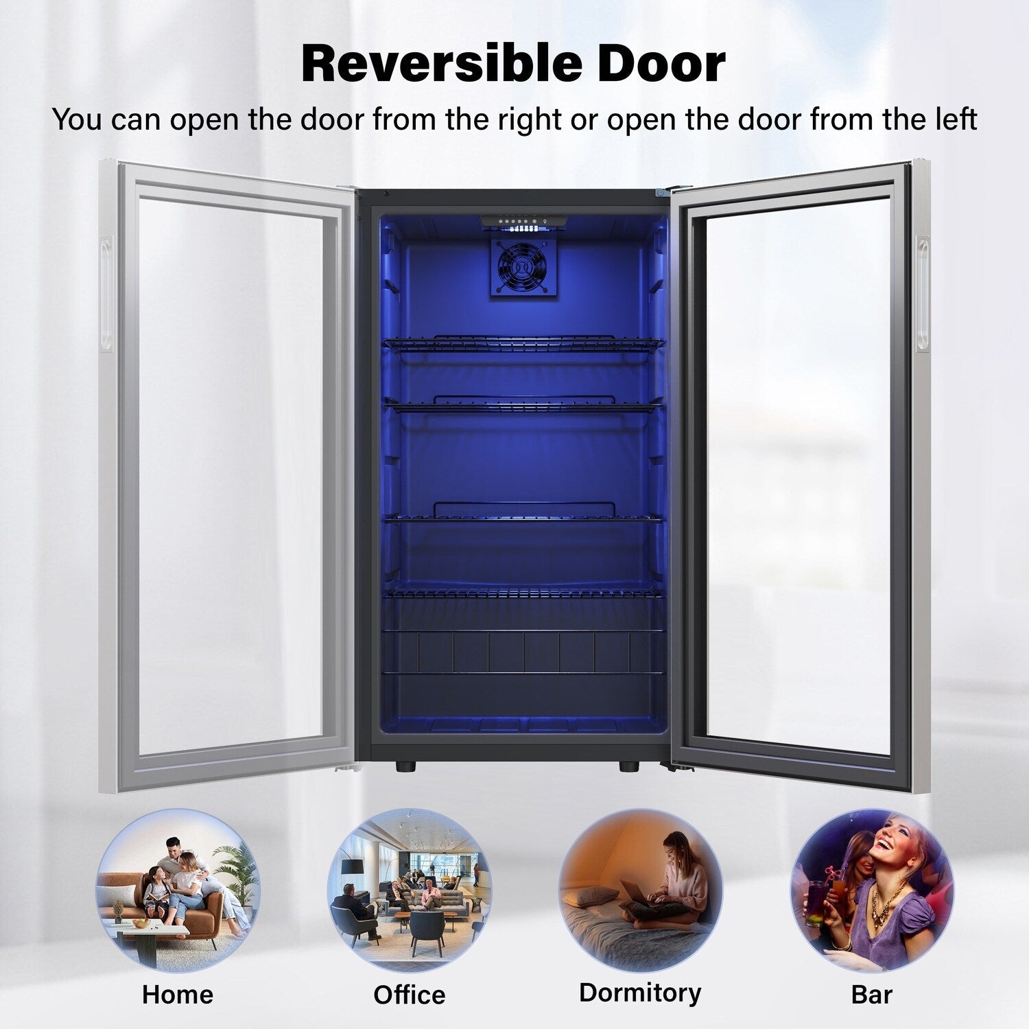 Flexible Placement and Use: This beverage refrigerator is equipped with adjustable feet and a reversible door, allowing for versatile placement in any setting. Ideal as a standalone unit, it is perfect for drink enthusiasts and makes a thoughtful gift for housewarmings or special occasions, ensuring your drinks are always ready to serve.